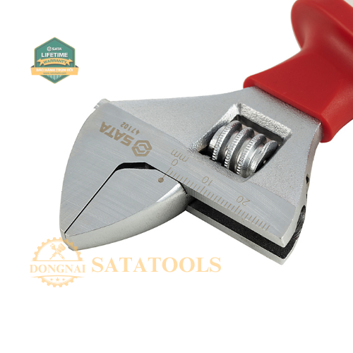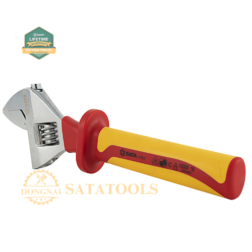 Mỏ lết chuyên dùng cách điện 1000V. Chất liệu: thép crom phủ niken chống gỉ. Chứng nhận VDE tiêu chuẩn IEC / EN 60900-2012 SATA