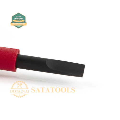 Tua vít dẹp VDE cách điện 1000V Mũi được làm bằng thép crom moladi molypden Chứng nhận VDE tiêu chuẩn IEC / EN 60900-2012 SATA